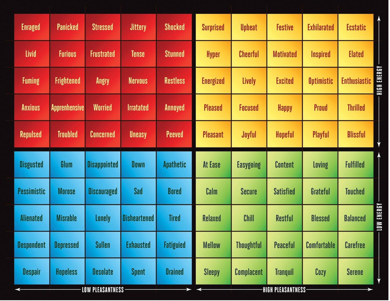 Write down all the family members with whom you will interact on a piece of paper, in your journal, or on your computer or phone. Then write 1 or 2 emotions that you noticed in yourself when you think about that family member. Label those feelings. If you need help with emotion vocabulary, here is a “feelings wheel” and “mood meter” to help you.